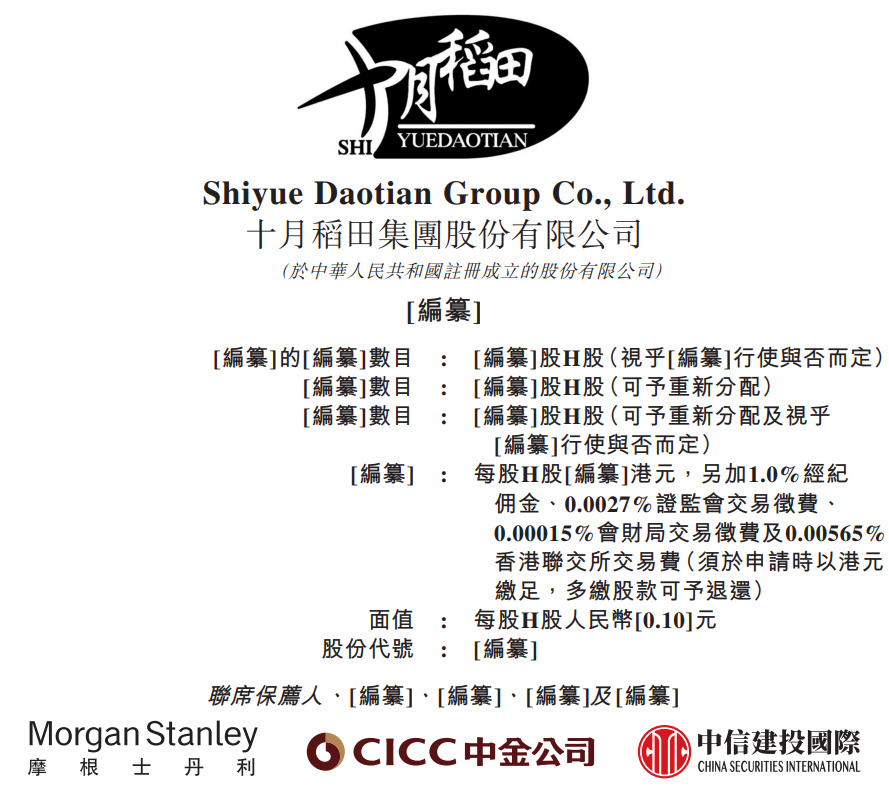 港交所近日披露,十月稻田递表港交所主板申请上市,摩根士丹利、中金公司、中信建投国际为联席保荐人。编辑 | Arti本文仅为信息交流之用,不构成任何交易建议