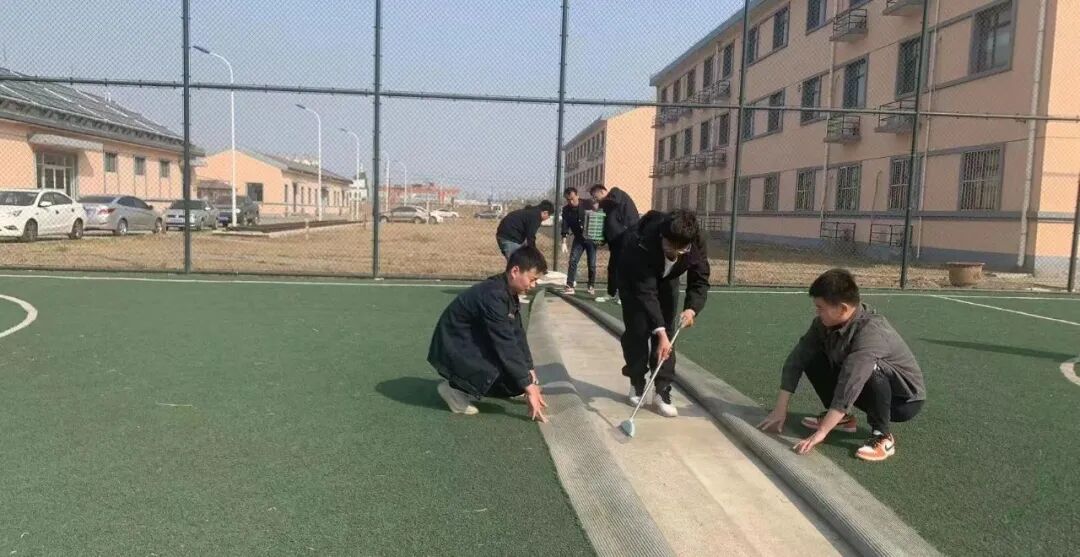 万码基地足球场为大家日常娱乐活动带来便利,但因长时间使用,部分草坪出现翘起、与地面粘连不密实的问题,既影响美观,又易发生人员摔倒而造成人员受伤的情况在公司工会的大力支持下,为基地购置了草坪补修专用胶,并由