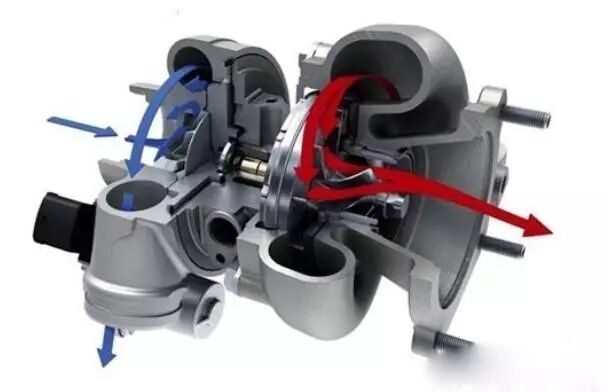 由于废气涡轮增压器是依靠进排气的平衡压力密封润滑油的,因此,在启动和关闭机器时,总是要有少量的发动机机油漏出,这也就造成了发动机机油的消耗涡轮增压器工作原理图