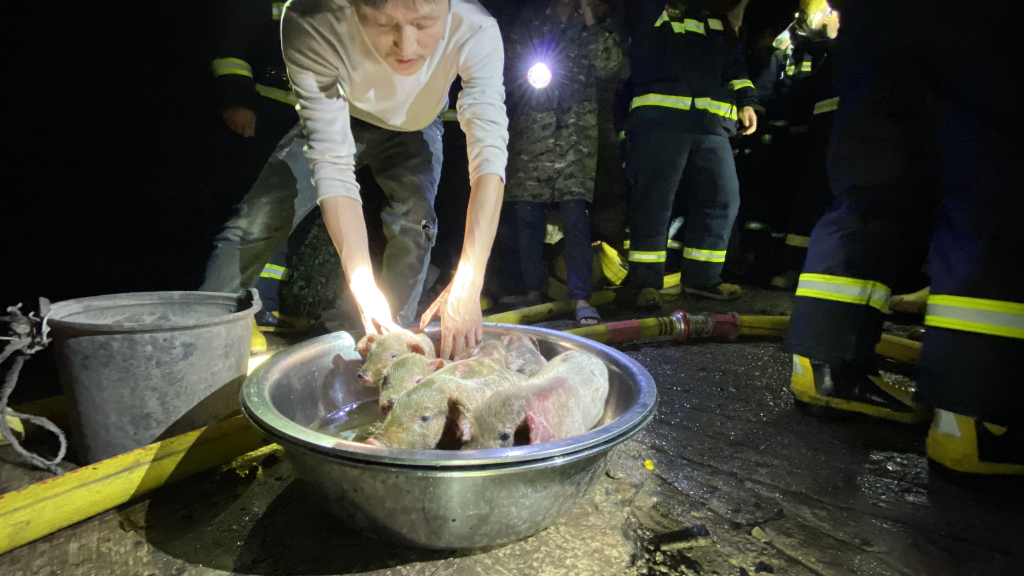 农户的猪陆续获救重庆渝北消防供图随后,消防员分成两组,一组继续使用水枪扑灭火灾隐患,给猪圈降温;一组进入猪圈,使用桶和盆转移小猪,并将大猪转移到安全区域最终,消防员救出了全部被困的猪,为农户挽回了损失目前,起火原因在进一步调查中。