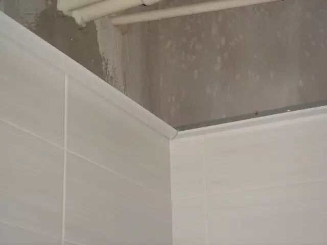 ▲安装后的脚线必须平整、紧贴着瓷砖边缘。