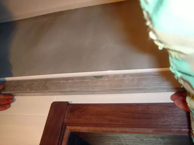 ▲安装后,为了保证脚线的平整,还得用水平尺再量一下。安装吊线