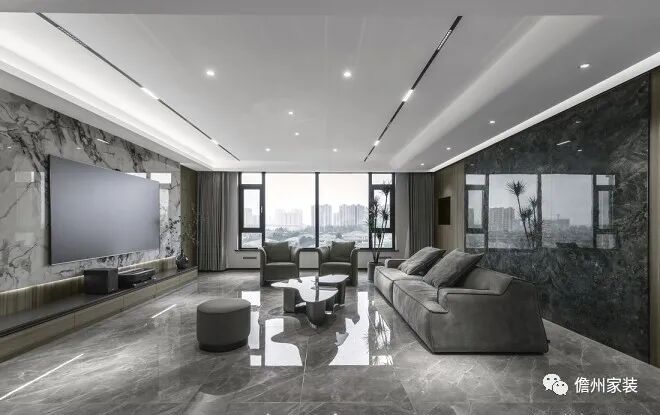 260m²现代风,整体空间以高级灰为主色调,全屋无主灯设计。