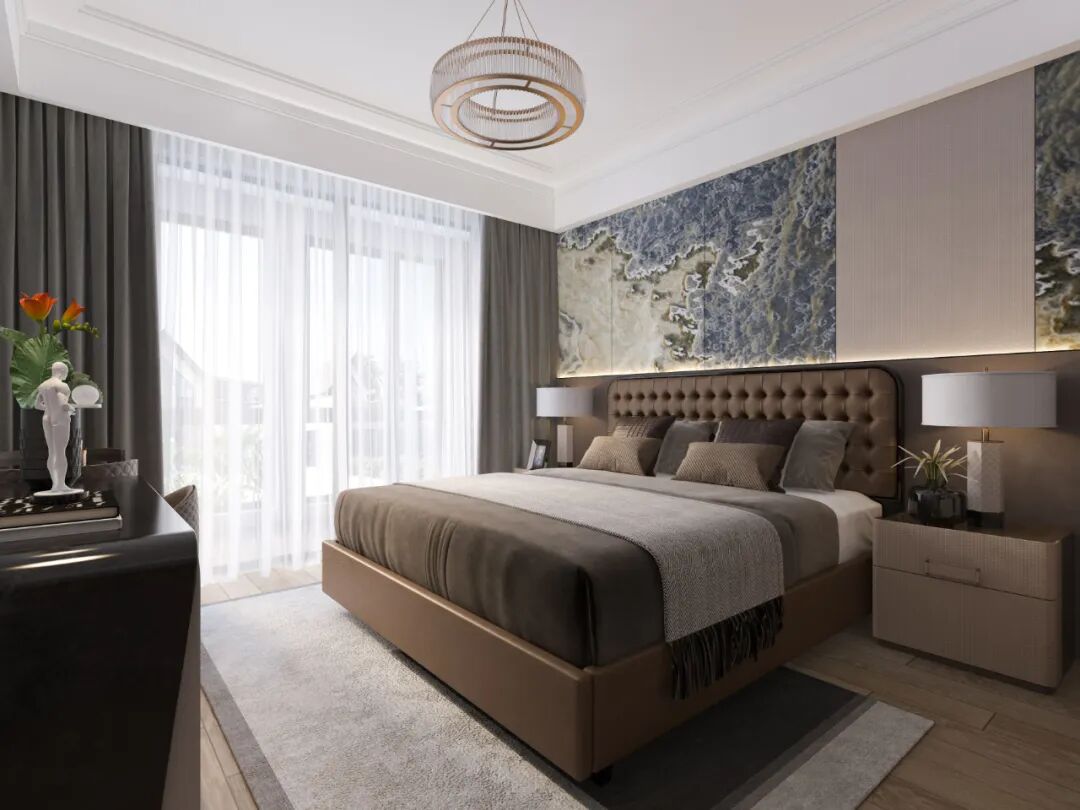 点击预约设计当延伸至空间的一份柔软,素雅敦厚的藏青色调闪烁着微金光泽,让墙面充满静谧与复古优雅。扫码查看