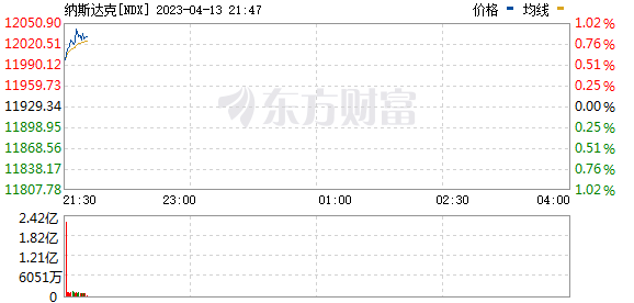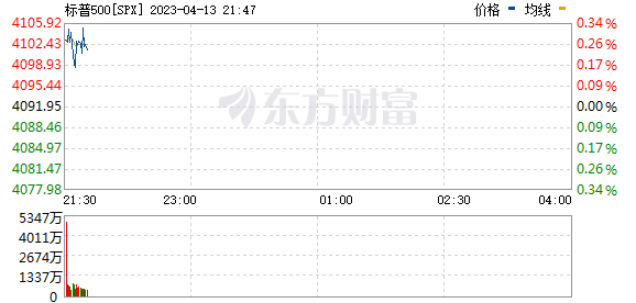 4月13日,美股三大指数走势分化,截至发稿,道指跌0.07%,纳指涨0.95%,标普500指数涨0.31%。