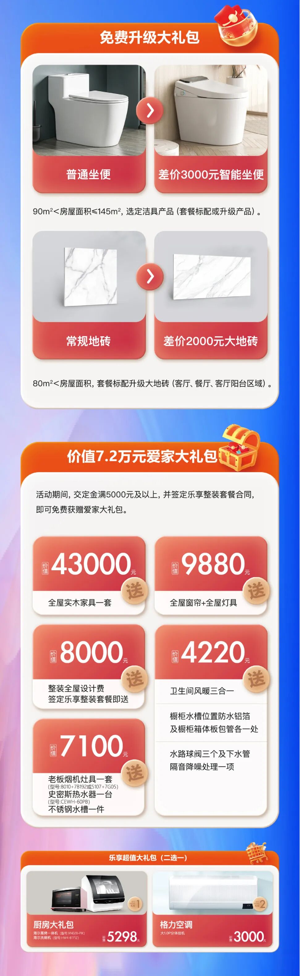 作为2023开春促销活动力天装饰整合家装上下游产业链联合圣象地板、箭牌卫浴、蒙娜丽莎瓷砖松下电器、老板电器等国内外品牌商家从基础装修到主材辅材、家具家电为消费者带来的乐享装整装产品做到省时省力省心省钱的“懒人装修”