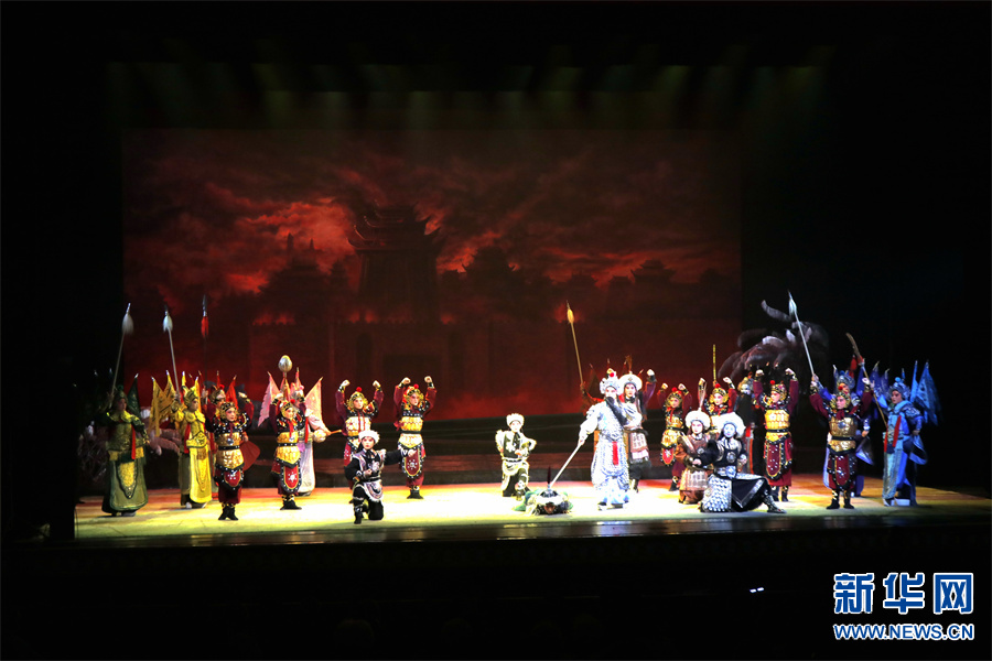 全剧通过宋金之间发生在漯河郾城的一场著名战役,讲述一个壮怀激烈的爱国故事,抒发一腔气壮山河的家国情怀,咏唱一曲英勇壮烈的慷慨悲歌新华网发(史帅 张盼盼 摄)