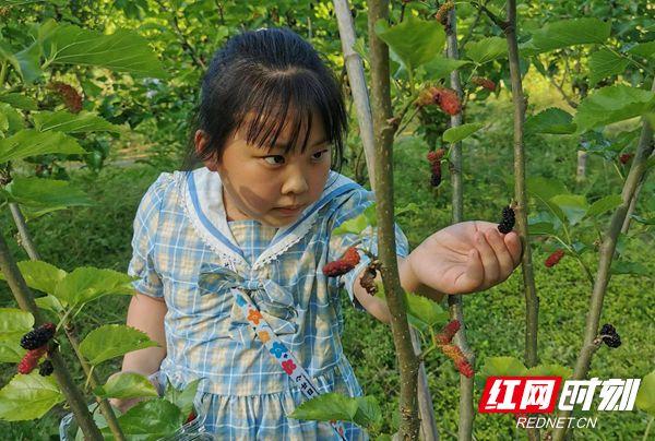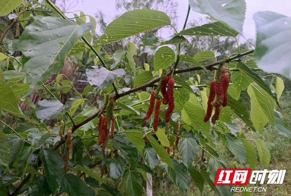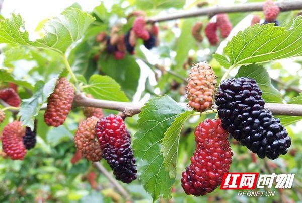 红网时刻记者 李森林 通讯员 屈泽清 张远碧 报道 桃花溪畔,碧水环绕,肥沃的土壤催生出香甜的瓜果,眼下正是桑葚成熟期4月24日上午,张家界市武陵源区中湖乡青龙垭村的桃花溪采摘园内,一个个紫红鲜嫩的桑葚挂满枝头,清风轻拂,桑叶起舞,桑葚微颤,散发出香甜诱人的气息。