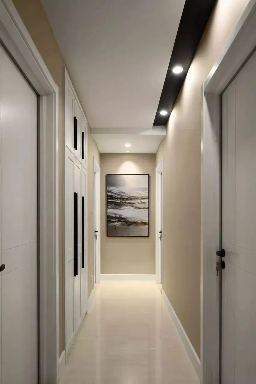 五、过道过道在户型里算是一个较为鸡肋的空间,但它作为动静区交流的必须空间又不得不保留着,如果想要利用一下这个空间的话,那么入墙式的收纳,结合过道墙后的卧室衣柜一起设计,既可以实现收纳,又能实现隔音隔墙功能。