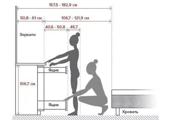弯腰穿鞋,或开抽屉取物,如果想要较为舒适,人体所占的空间至少要有60cm▽