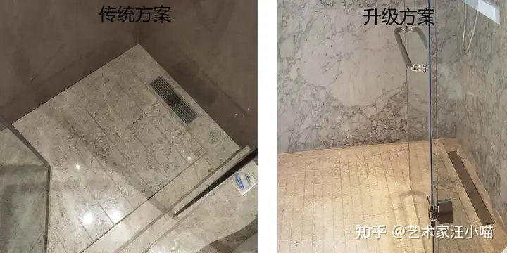 三、淋浴区10、暗藏地漏暗藏地漏可以只用不锈钢盖,升级版的扣上和淋浴房地面同等材料的盖板能更加隐形,既美观又能防止堵塞。