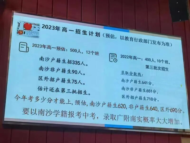 今年考多少分才能上广附南实?校方预估,南沙户籍生620分,非户籍生640分,区外690分。