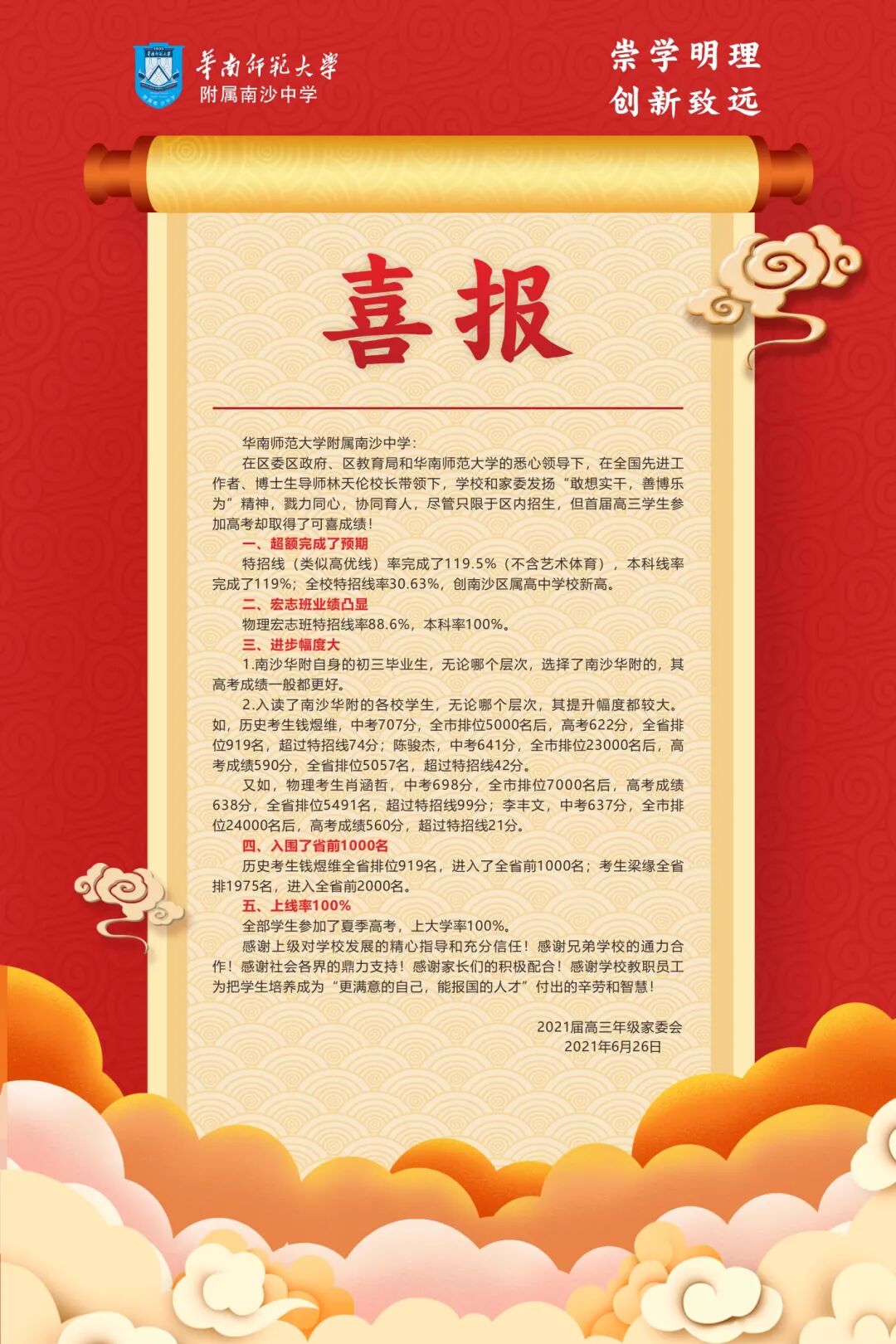 有1人被武汉大学录取,3人被中山大学录取,1人被华中科技大学录取等学校的加工能力、高考业绩突出!2022年高考南沙华附成为全市特控线加工值(培养能力)最强的学校戳标题阅读相关热帖:南沙华附!2022年高考全市特控线加工值最强学校!。