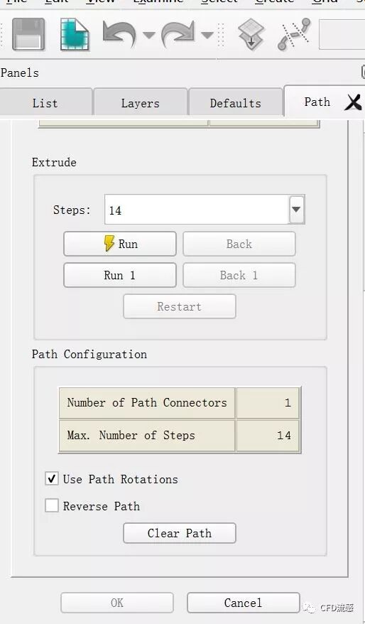 圆管长度方向建立一条conncetor布点15个选择圆形面网格,然后create->extrude->path,Pointwise会提示合并,点击done然后选择圆管长度方向上刚刚建立的那条connector。