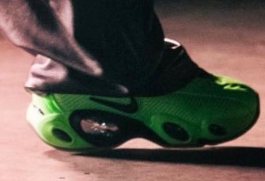 最近Drake上脚了全新绿色款,虽然图片不是那么清晰。 但可以发现碳纤维「大眼睛」改为电镀质感,配合通体绿色装扮,视觉冲击力更强。