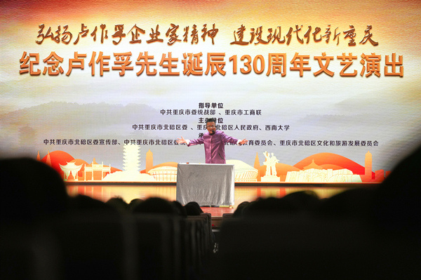北碚区举行纪念卢作孚先生诞辰130周年文艺演出秦廷富摄 4月13日,“弘扬卢作孚企业家精神 建设现代化新重庆”纪念卢作孚先生诞辰130周年文艺演出在重庆市兼善中学蔡家校区举行 歌舞《作孚颂》拉开了文艺演出的序幕。