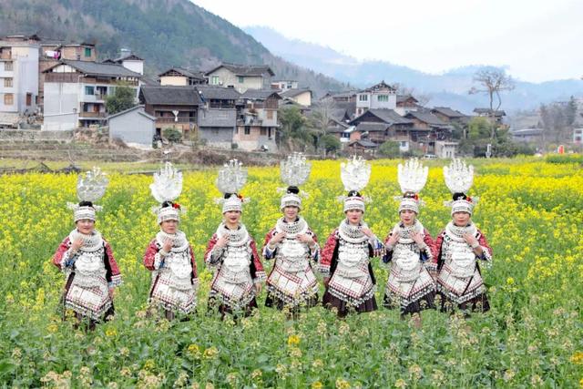 载歌载舞享受春光。陶国华 摄 日前,贵州省台江县老屯乡长滩村的油菜花迎来盛花期,一望无际的油菜花田花开成海,吸引了众多游人前来踏春赏花。