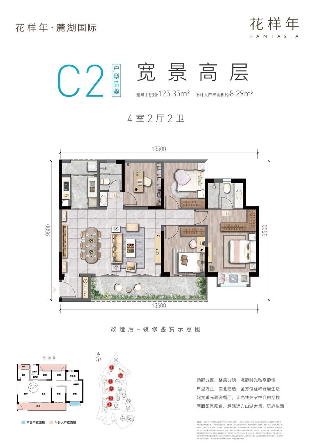 C2户型125㎡四室两厅两卫该户型整体比较开阔,空间感很强,两个超大阳台,也让人觉得赏心悦目!