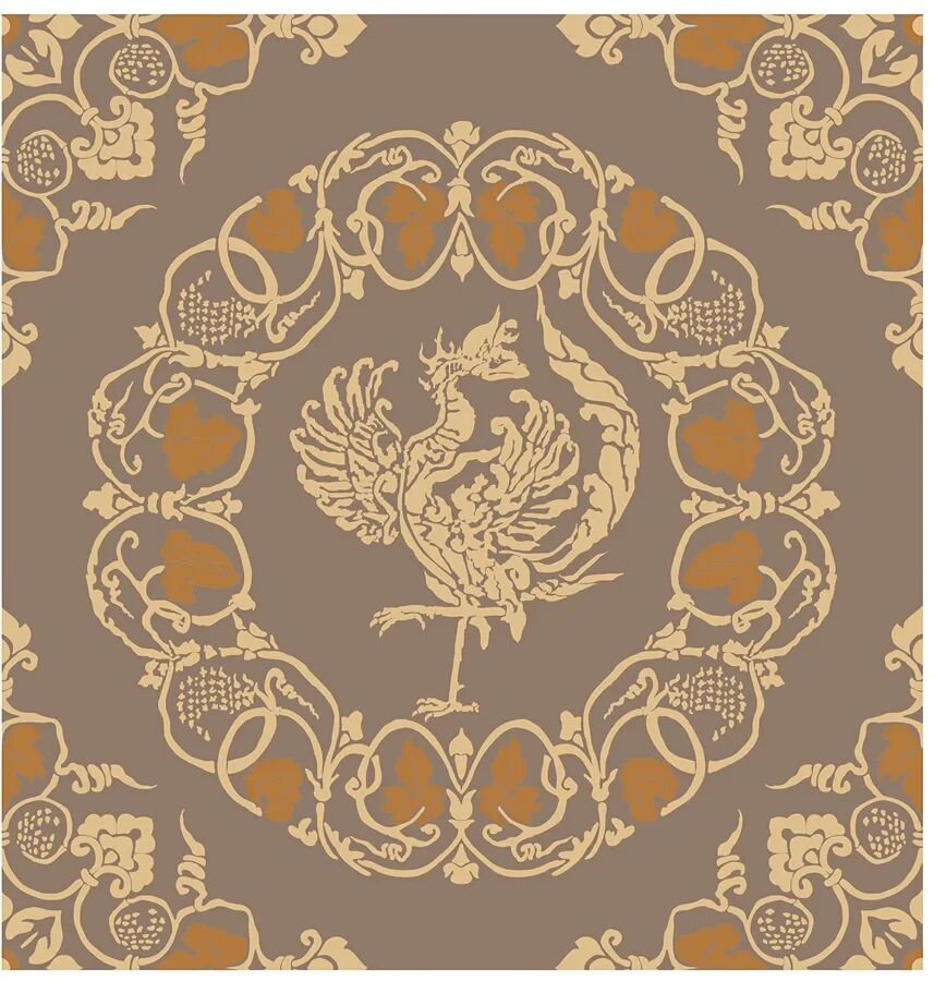这类织锦在热水大墓的出土物中虽不多见,但也有黄地狮凤穿花锦、紫地飞鹤穿花锦等若干实例其纹样具有明显的写生味,在排列上没有一定的骨架,也没有团窠那样的规律,只是根据纹样的本身需要来进行排列花卉多是折枝,风格写实,逼真生动,再在花丛中穿插以狮、凤、鹊等动物等纹样,使整个图案有一种场景的效果。
