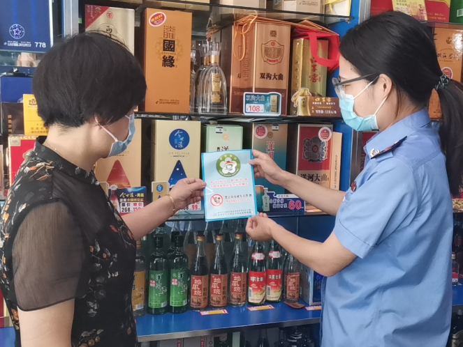 今年6月新实施的《未成年人保护法》要求学校、幼儿园周边不得设置烟、酒、彩票销售网点,因此工作人员还对校园周边各经营单位是否存在售酒行为进行检查,同时张贴“禁止向未成年人售酒”的警示标语,强调未成年人饮酒的危害,督促经营户严格履行主体责任,主动做到不向未成年人出售烟酒,进一步规范自身经营行为。