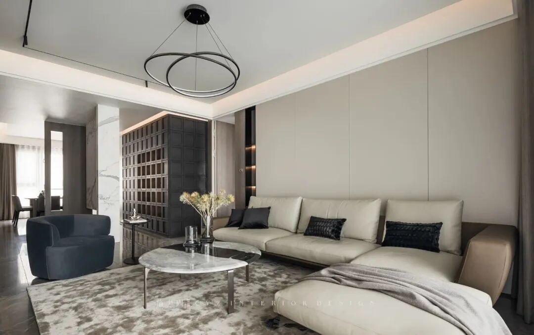 “家居住着舒服最重要,我希望家里是温和的、柔暖的”,这是设计师的阐述放眼望去,木纹灰和象牙灰白的背景墙,深灰色系的地面及局部格栅柜门,配上拼色皮质沙发,屋内呈现出沉稳温馨的氛围风格通过不同的材料和元素被引入空间中,串联演绎出屋主憧憬的家的样子,所以爽朗的特质在这里非常明确。