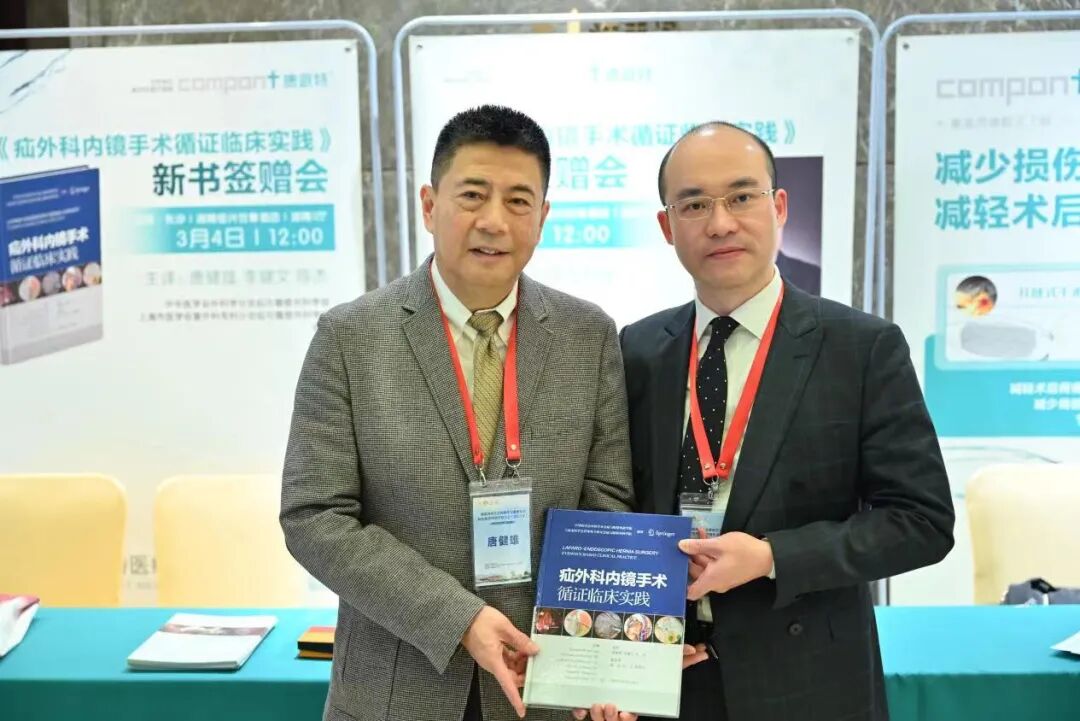 携手领域权威 共享共建内镜手术诊疗规范 值此湖南省医学会外科专业委员会疝和腹壁外科学组年会开幕之际,在黄耿文主任的支持下,康派特邀请《疝外科内镜手术循证临床实践》的主译专家之一唐健雄教授亲临会场举行新书签赠活动。