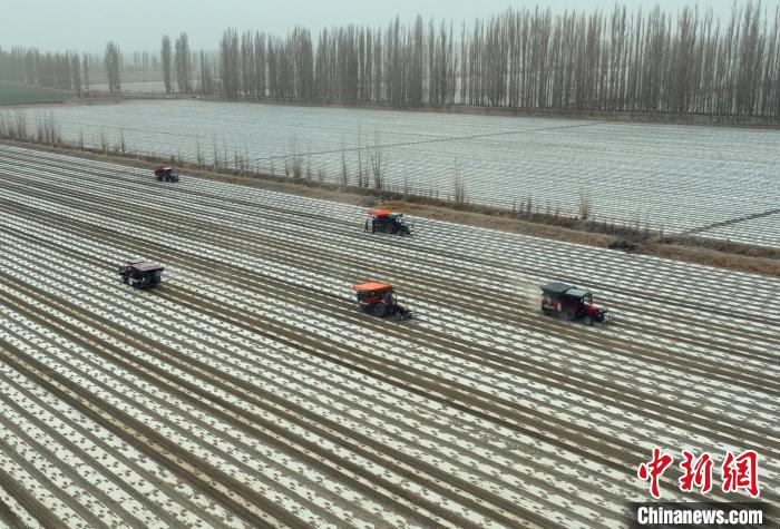 眼下,新疆兵团焉耆垦区各团场20多万亩辣椒进入最佳移栽期 白克斌 摄 7日,在第二师二十一团八连职工薛东升的150亩条田里,机声隆隆,15台全自动北斗导航系统辣椒机正在进行辣椒苗的取苗、投苗等移栽程序,地里一派忙碌的春耕场面。