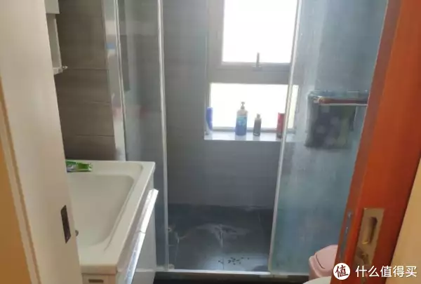 主卫的面积很小,淋浴区设计了玻璃淋浴房,空间小小的,不过干湿分离功能效果很不错。窗户下面有小小的飘窗,墙壁也设计了嵌入式的壁龛,刚好可以用来摆放洗漱用品,连收纳架都省了。
