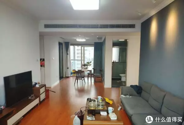 客厅玄关进来就是开放式客餐厅,玄关进来的右手边是客厅。从玄关开始,全屋都是橘红色的复合木地板。木地板给人的感觉更加温馨舒适,然而却没有瓷砖地板那种轻奢感。