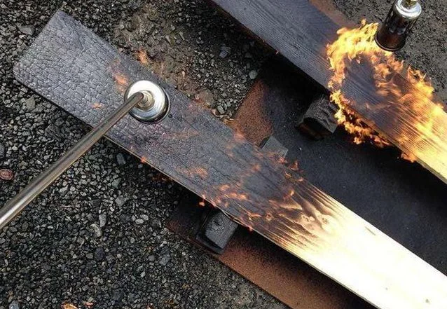 经过检验和对比,在高温大火的环境中,普通阻燃板已经熊熊燃烧,中木樵夫阻燃板仅表面发生碳化现象,无明焰燃烧,能从根本上抑制火灾发生燃烧后的剩余物无毒、无污染、无滴落物