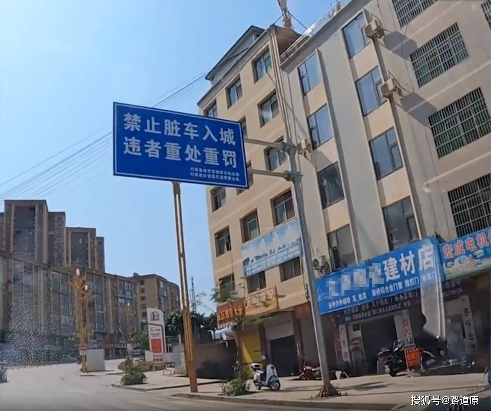 为了方便进城的群众,几个进出县城的路口,都贴心地设有脏车的洗车点。去往县城的很多路段,路边都有招牌提示:“脏车入城,请主动洗车”“禁止脏车入城,违者重处重罚”。