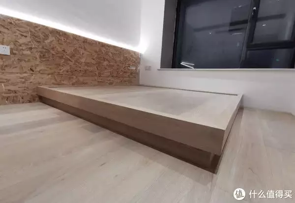 缺点也很明显,纯纯的榻榻米的2.0版本,地面欧松板打底,再铺上木饰面,没有排骨架,透气性差,南方梅雨季节极其容易发霉。