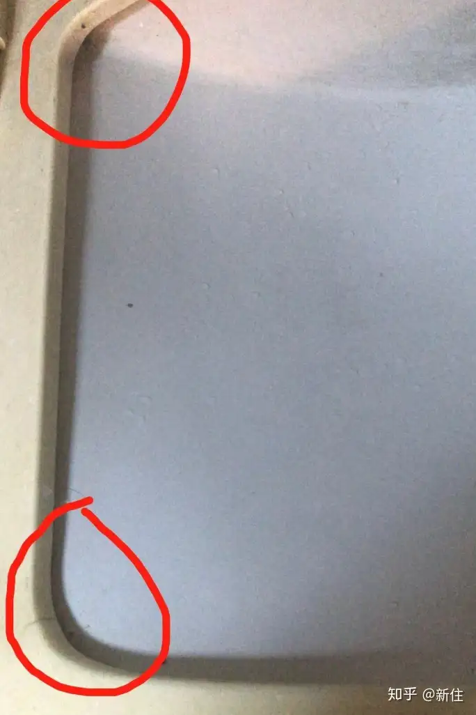 支持台下盆的抨击台上盆,链接台面处卫生玻璃胶时间长发霉,有卫生死角