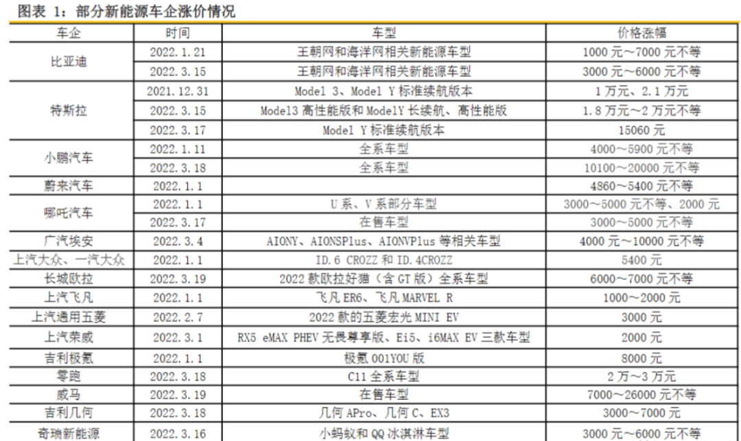 而当碳酸锂价格上涨10万元/吨的时候,它们相应的碳酸锂材料成本增加0.41万元、0.3万元和0.1万元;成本变动占车价的比例分别为1.5%、1.9%和0.7%。