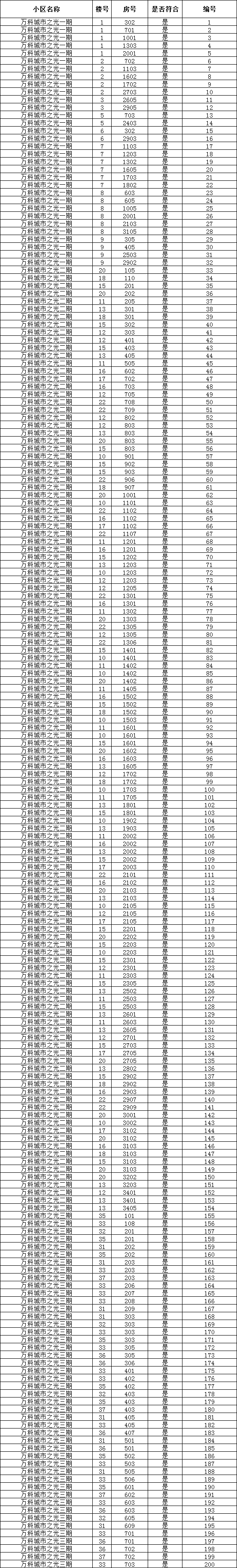 符合首次装修并实际入住的商品房住宅的编号清单