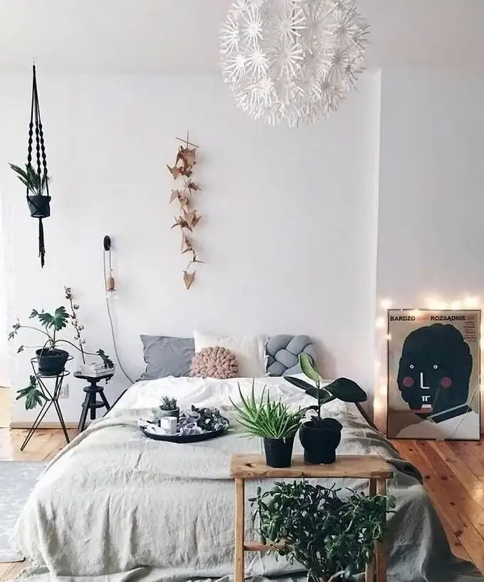 绿植:温馨的卧室怎么能少了绿植呢,龟背竹、绿萝、琴叶榕、仙人掌......可以摆放在卧室空闲的位置,增加卧室亲和力。